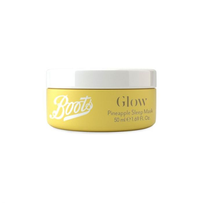 Boots Glow Pineapple Masker is een gezichtsmasker dat je huid 's nachts verzacht, verzorgt en hydrateert.