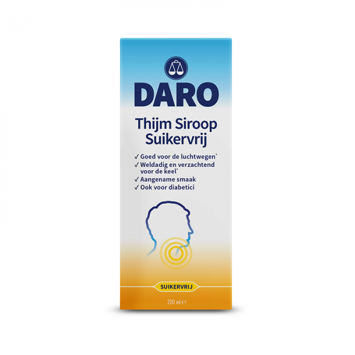 De Originele Thijm Siroop van Daro is er ook in een suikervrije variant. De Siroop bevat het extract van de Thijmplant en is al jaren een vertrouwd middel. De siroop is goed voor de luchtwegen en is weldadig en verzachtend voor de keel.* Bovendien bevat de Siroop geen suiker, kleurstoffen en lactose.
