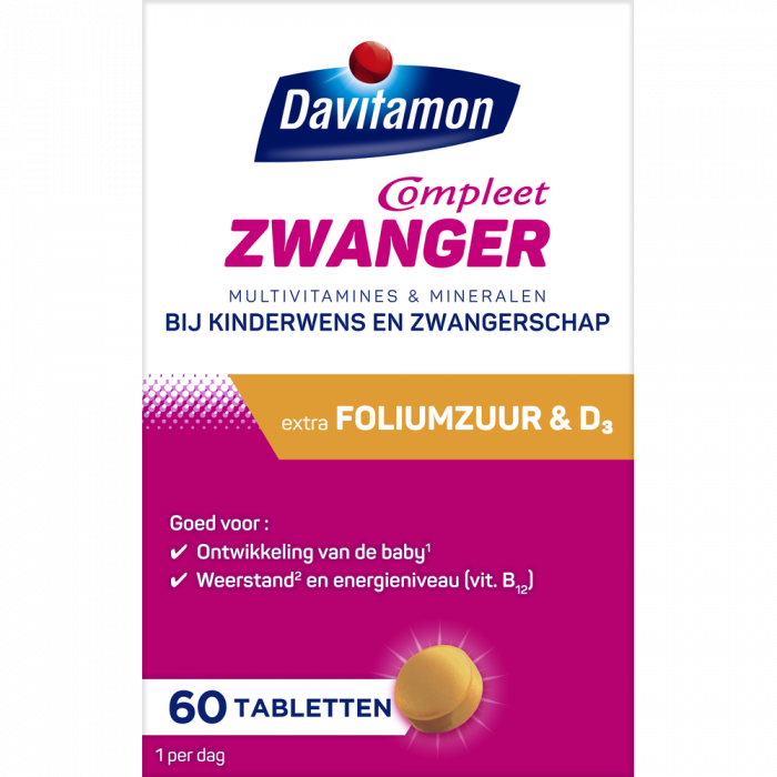 Foliumzuur (vitamine B11) 400 mcg, Bètacaroteen, Calcium, Chroom, IJzer, Jodium, Koper, Magnesium, Mangaan, Molybdeen, Selenium, Zink
