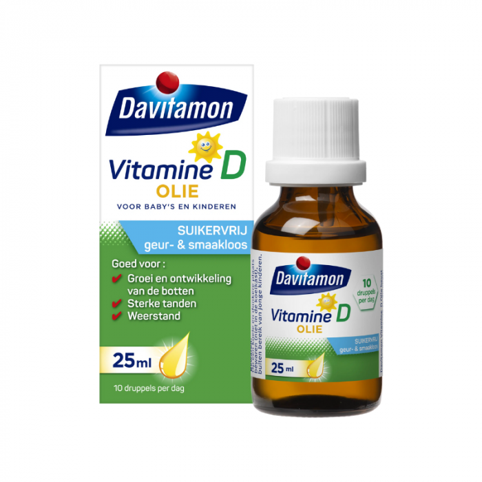Davitamon Vitamine D Olie voor baby's en kinderen ondersteunt met 10 microgram vitamine D voor groei en ontwikkeling van de botten, sterke tanden en weerstand. Aanbevolen door Gezondheidsraad voor optimale ontwikkeling.