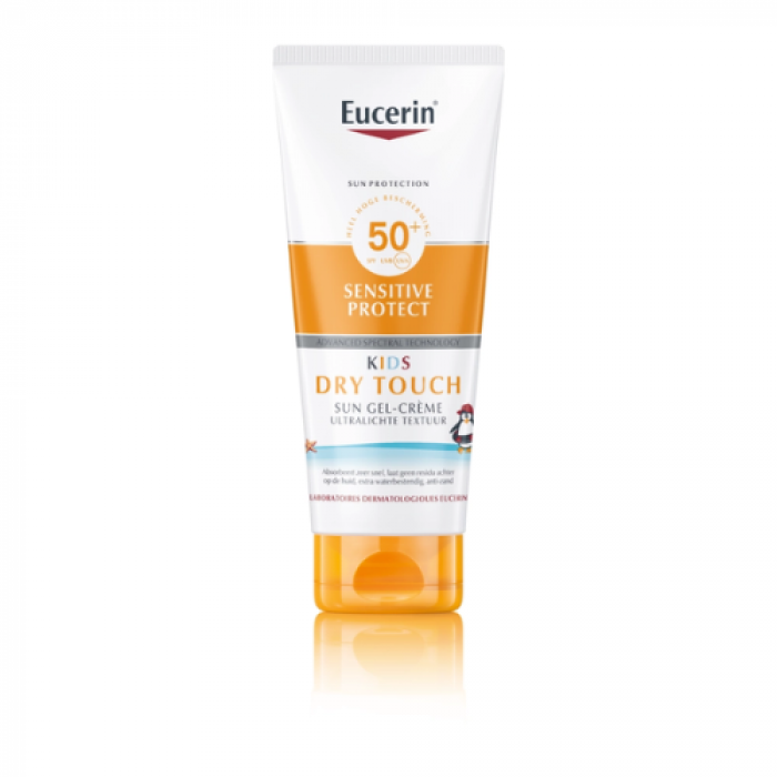 Eucerin Sun Sensitive Protect Dry Touch Kids Gel Creme SPF50+ biedt krachtige en waterbestendige bescherming met een snel absorberende formule voor langdurige speeltijd zonder zorgen in de zon!
