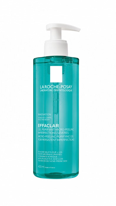 La Roche-Posay Effaclar Zuiverende Micro-Peeling Gel helpt bij onzuiverheden op lichaam én gezicht. Zuivert de poriën intensief en matteert de huid. Helpt toekomstige uitbraken van pukkeltjes tegengaan. Met actieve ingrediënten Salicylzuur, LHA, zink en glycerine zorgt het voor exfoliëren.