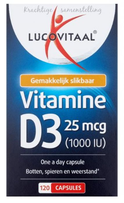 Op zoek naar vitamine D? Lucovitaal Vitamine D3 is goed voor je spieren, botten en weerstand. Door gebruik van Lucovitaal Vitamine D3 capsules ondersteun je je botten, beter immuunsysteem, sterke tanden en spieren. Vaak krijg je dagelijks voldoende Vitamine D binnen, toch zijn er een aantal groepen behoefte aan extra vitamine D, denk hierbij aan kinderen tot 4 jaar, zwangere vrouwen, ouderen vanaf 70 jaar, vrouwen vanaf 50 jaar, mensen met een donkere huidskleur en mensen die niet voldoende buiten komen. Dit laatste is natuurlijk omdat je buiten lekker in de zon kunt zijn en daarmee je vitamine D binnen krijgt. Let wel dat je dan minimaal 15 tot 30 minuten buiten moet zijn geweest bij een hoogstaande zon.