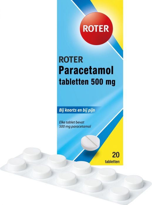 Paracetamol is een stof die gebruikt wordt bij de behandeling van lichte tot milde pijn en koorts. Paracetamol werkt pijnstillend en koorts verlagend. Roter Paracetamol Tabletten worden gebruikt bij hoofdpijn, koorts en pijn bij griep en verkoudheid, koorts en pijn na vaccinatie, kiespijn, zenuwpijn, spit, spierpijn en menstruatiepijn.
